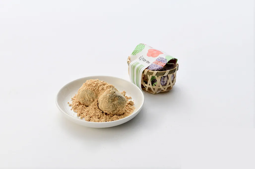 こしあんを求肥で包み、黄粉をまぶしました。「話そうか」の名のお菓子。会話のおともに。