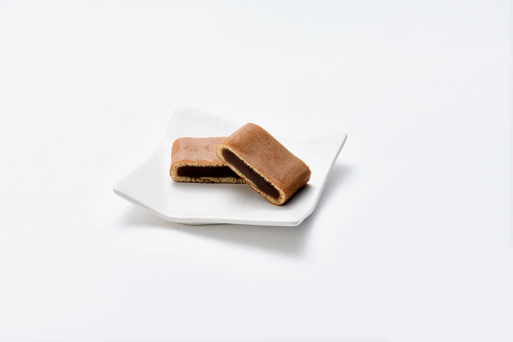 こしあんをカステラ生地で巻きあげています。